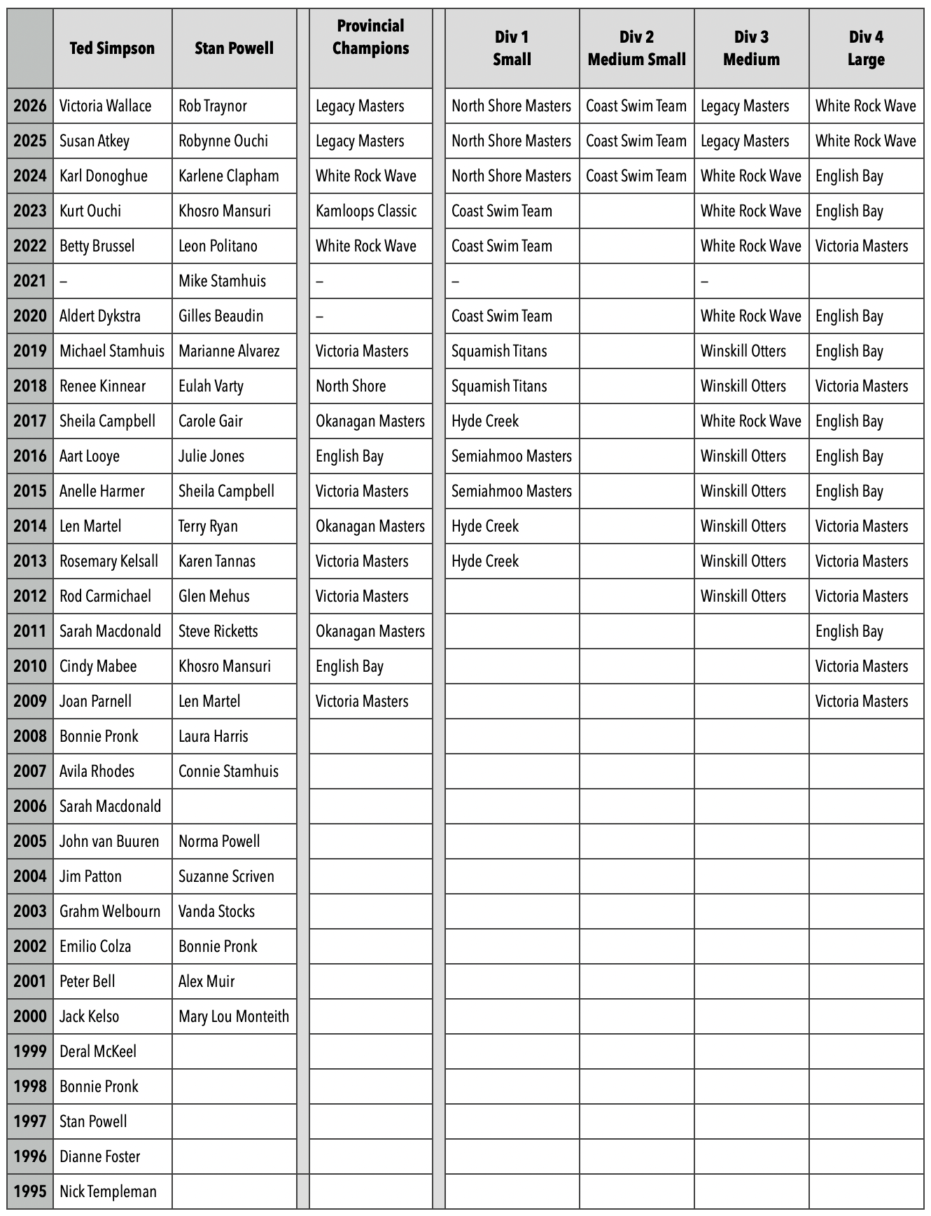 Past Award and Trophy Recipients